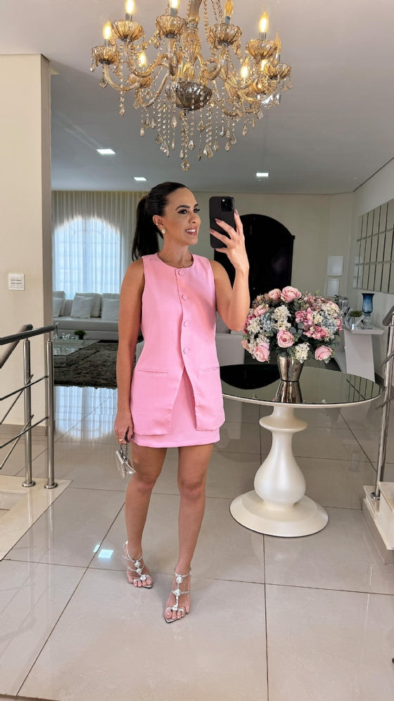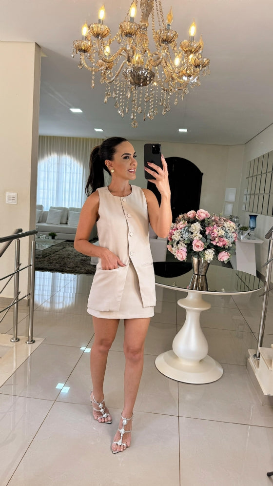 O Conjunto Alice é a combinação perfeita de elegância e versatilidade. Composto por duas peças, apresenta uma saia de cintura alta que valoriza a silhueta e uma blusa em alfaiataria com fechamento por botões, trazendo um toque moderno e sofisticado ao look. Ideal para quem busca um visual impecável para qualquer ocasião!